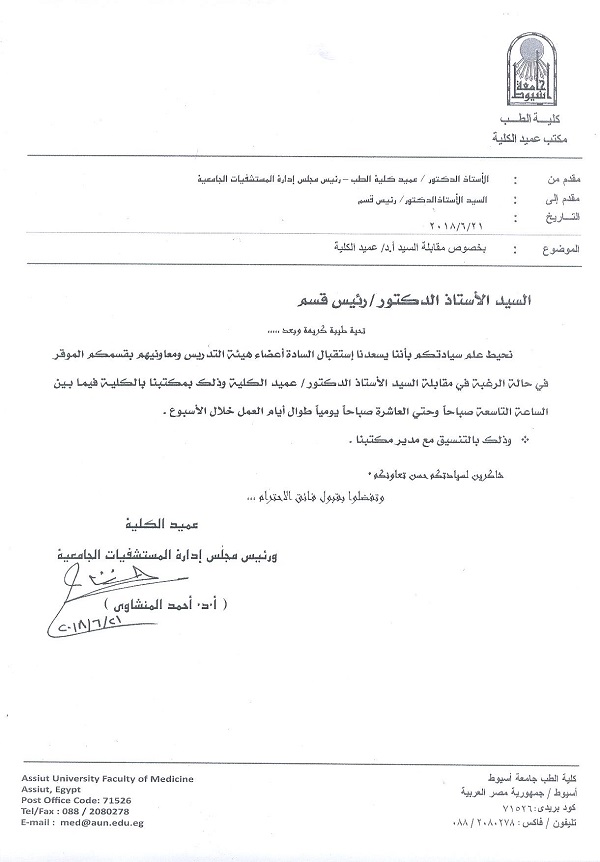 أعلن الأستاذ الدكتور / ماهر مختار - مدير مستشفى الأطفال الجامعي بجامعة أسيوط