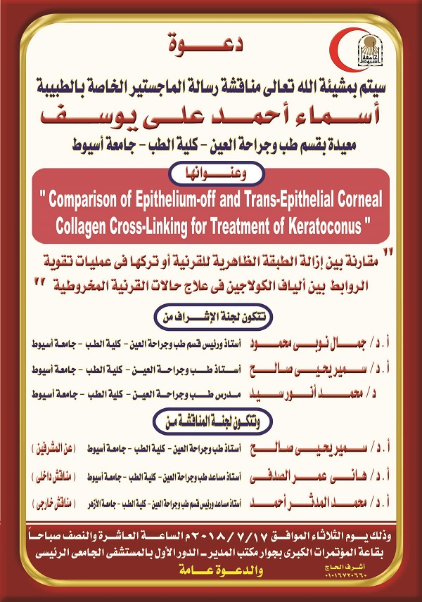 وذلك يوم الأربعاء الموافق 4/7/2018 الساعة 9 صباحاً بمدرج وحدة ضمان الجودة