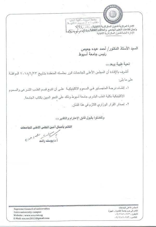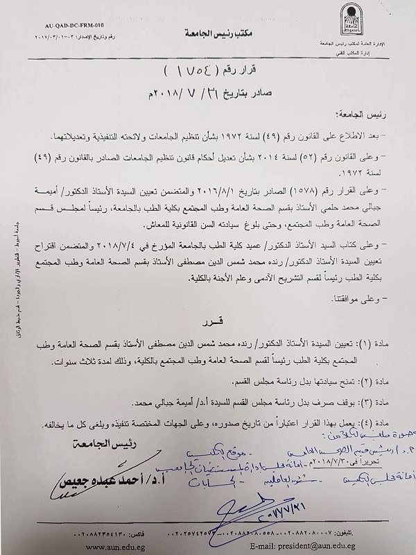 تعيين أ.د/ رنده محمد شمس الدين مصطفى الأستاذ بقسم الصحة العامة وطب المجتمع رئيساً لمجلس القسم