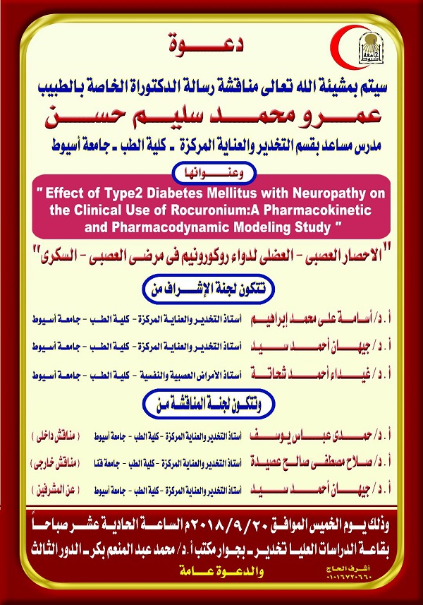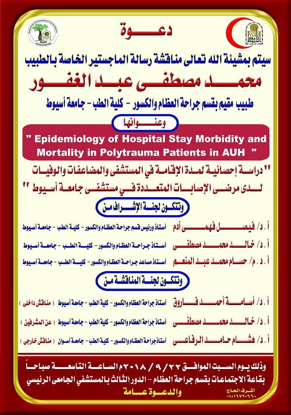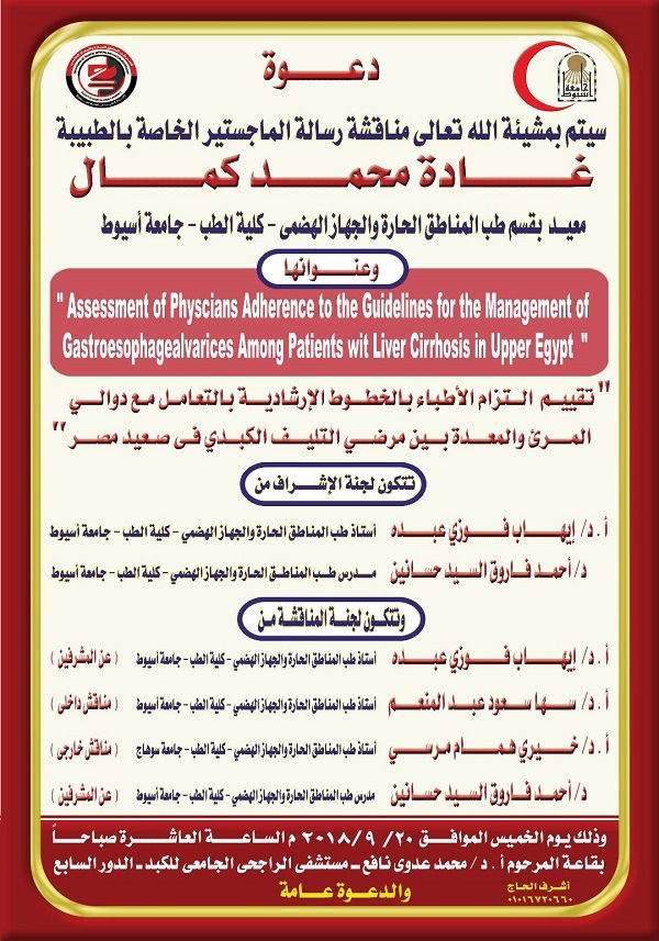مناقشة رسالة الماجستير الخاصة بالطبيبة/ غادة محمد كمال الطبيب بقسم طب المناطق الحارة والجهاز الهضمي