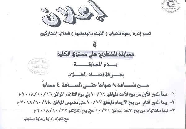 وذلك يومي الأربعاء والخميس الموافق 24-25 أكتوبر 2018 الساعة العاشرة صباحاً