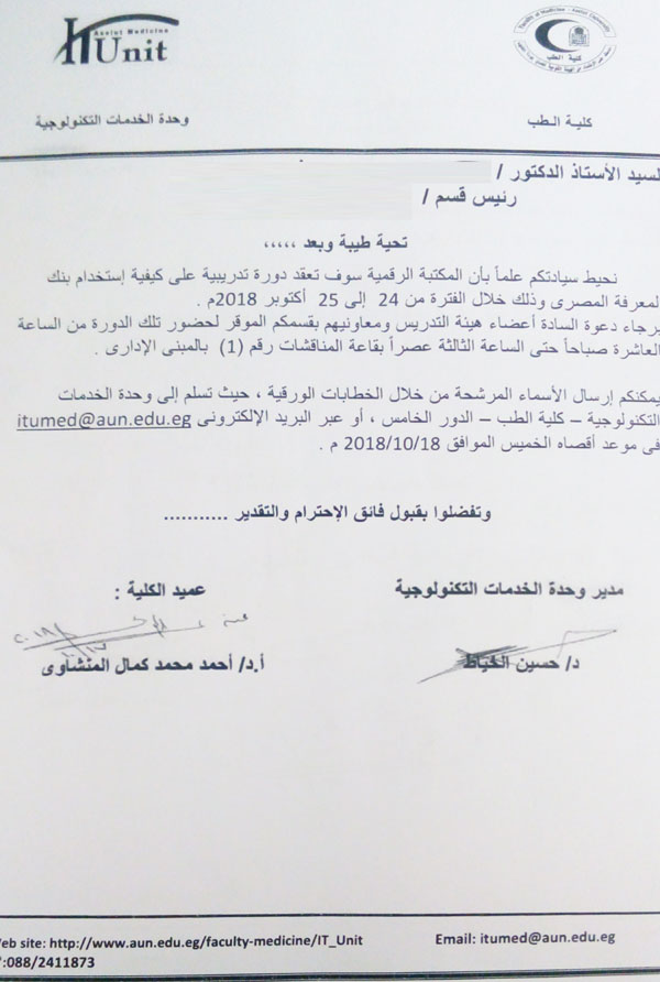 سوف يتم عقد دورة تدريبية عن كيفية إستخدام بنك المعرفة المصري بالمكتبة الرقمية
