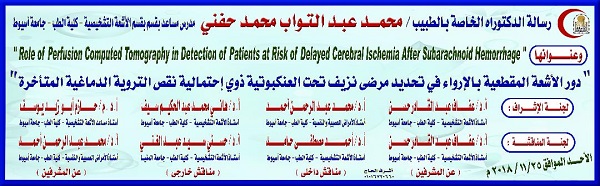 مناقشة رسالة الدكتوراه الخاصة بالطبيب/ محمد عبد التواب محمد حفني المدرس المساعد بقسم الآشعة التشخيصية
