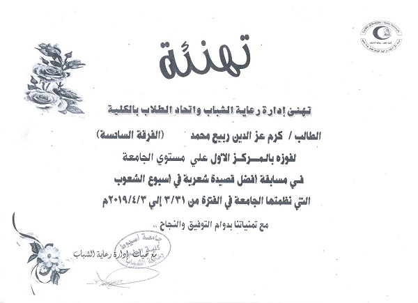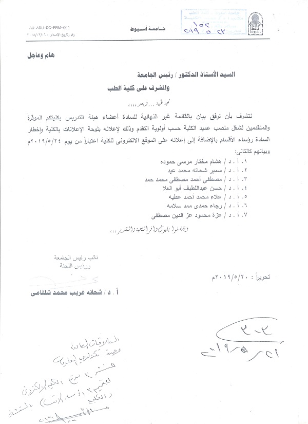 القائمة الغير نهائية للسادة أعضاء هيئة التدريس المتقدمين لشغل منصب عميد الكلية Read more about القائمة الغير نهائية للسادة أعضاء هيئة التدريس المتقدمين لشغل منصب عميد الكلية القائمة الغير نهائية للسادة أعضاء هيئة التدريس المتقدمين لشغل منصب عميد الكلية 27 مايو 2019