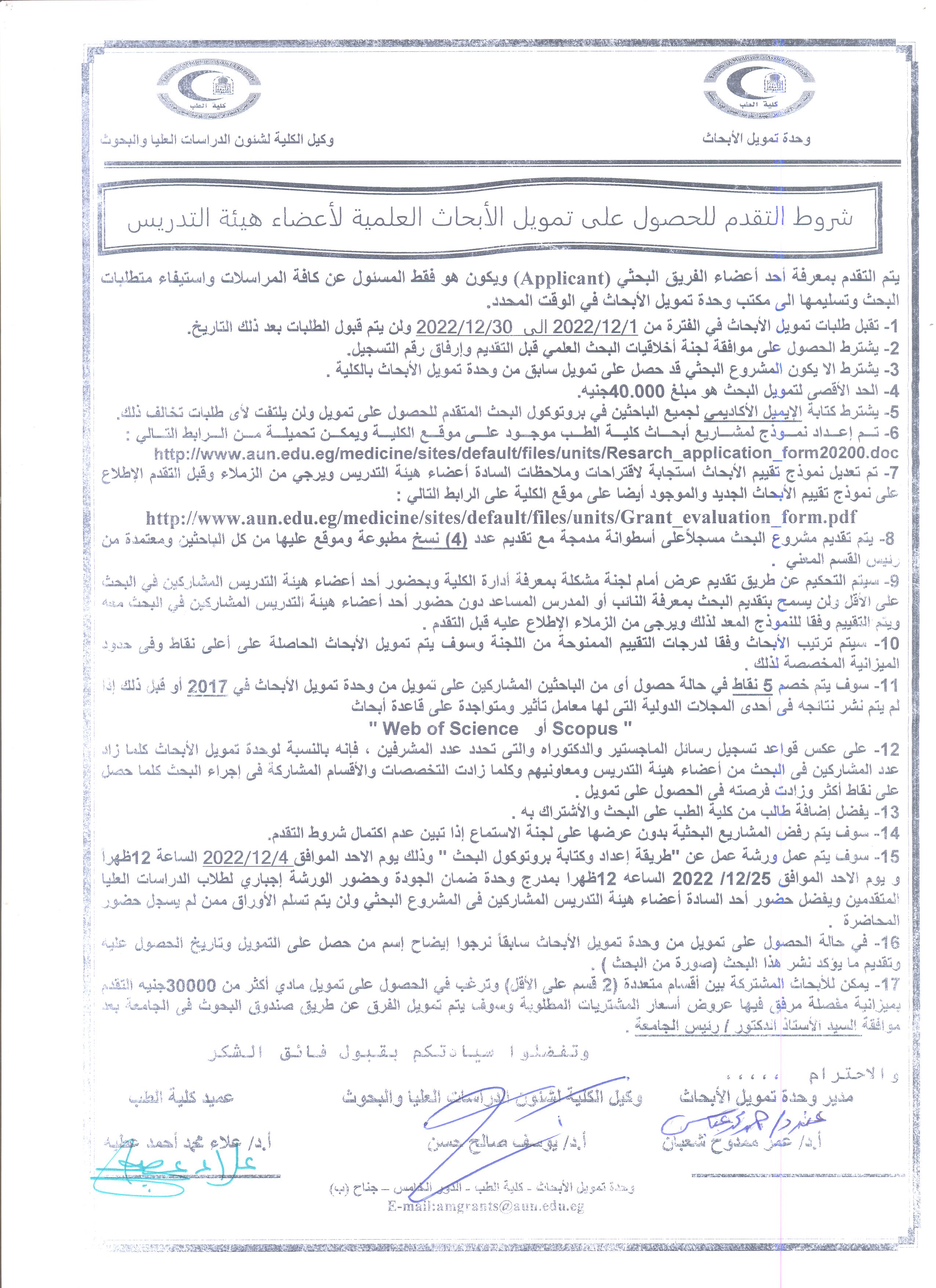 شروط التقدم للحصول على تمويل الابحاث العلميه لاعضاء هيئه التدريس - 23 نوفمبر 2022