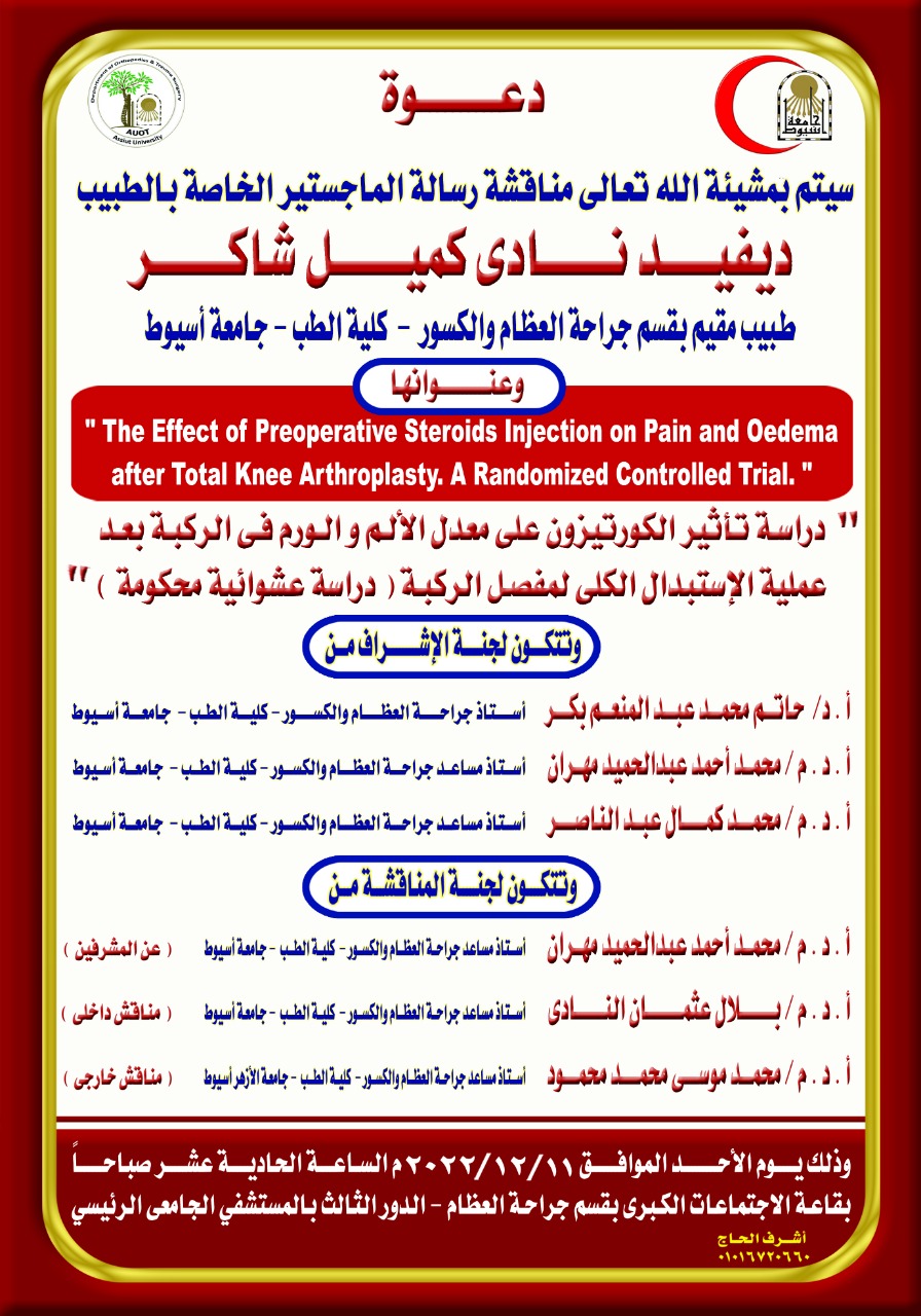 سيمينار الطبيب - ديفيد نادى كميل شاكر - طبيب مقيم بقسم جراحة العظام - كلية الطب - جامعة اسيوط 9 ديسمبر 2022