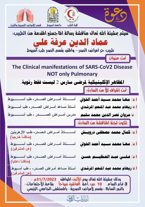 سيمينار الطبيب / عماد الدين عرفة على - طبيب حر أمراض الصدر - والمقيد بقسم الصدر طب أسيوط 30 يوليو 2023