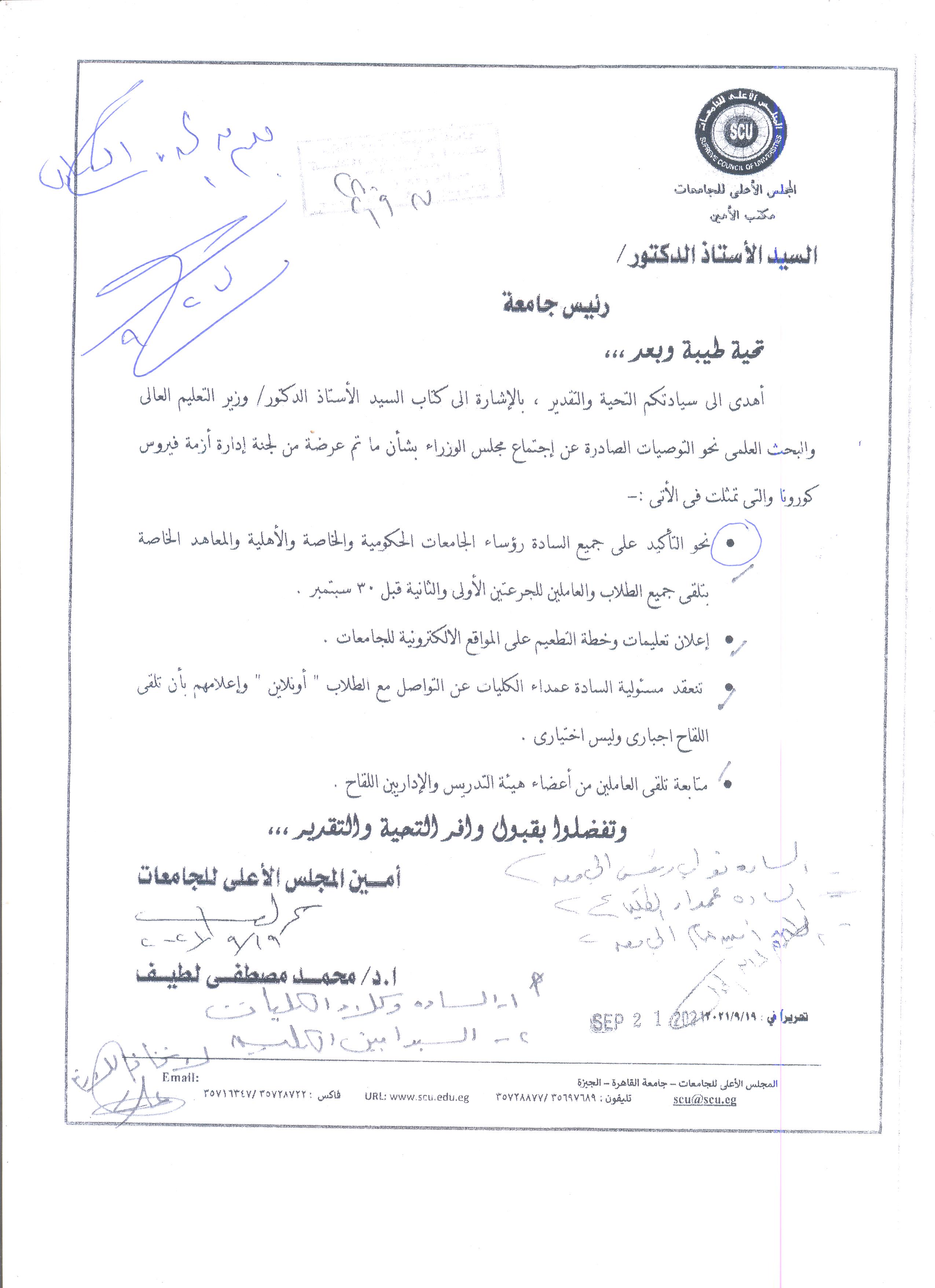 تأكيدالمجلس الأعلى للجامعات على تلقى لقاح الكورونا