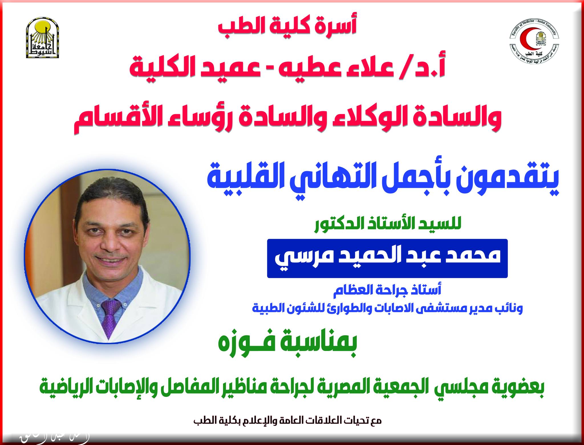 تهنئة للسيد الأستاذ الدكتور / محمد عبد الحميد مرسى - أستاذ جراحة العظام