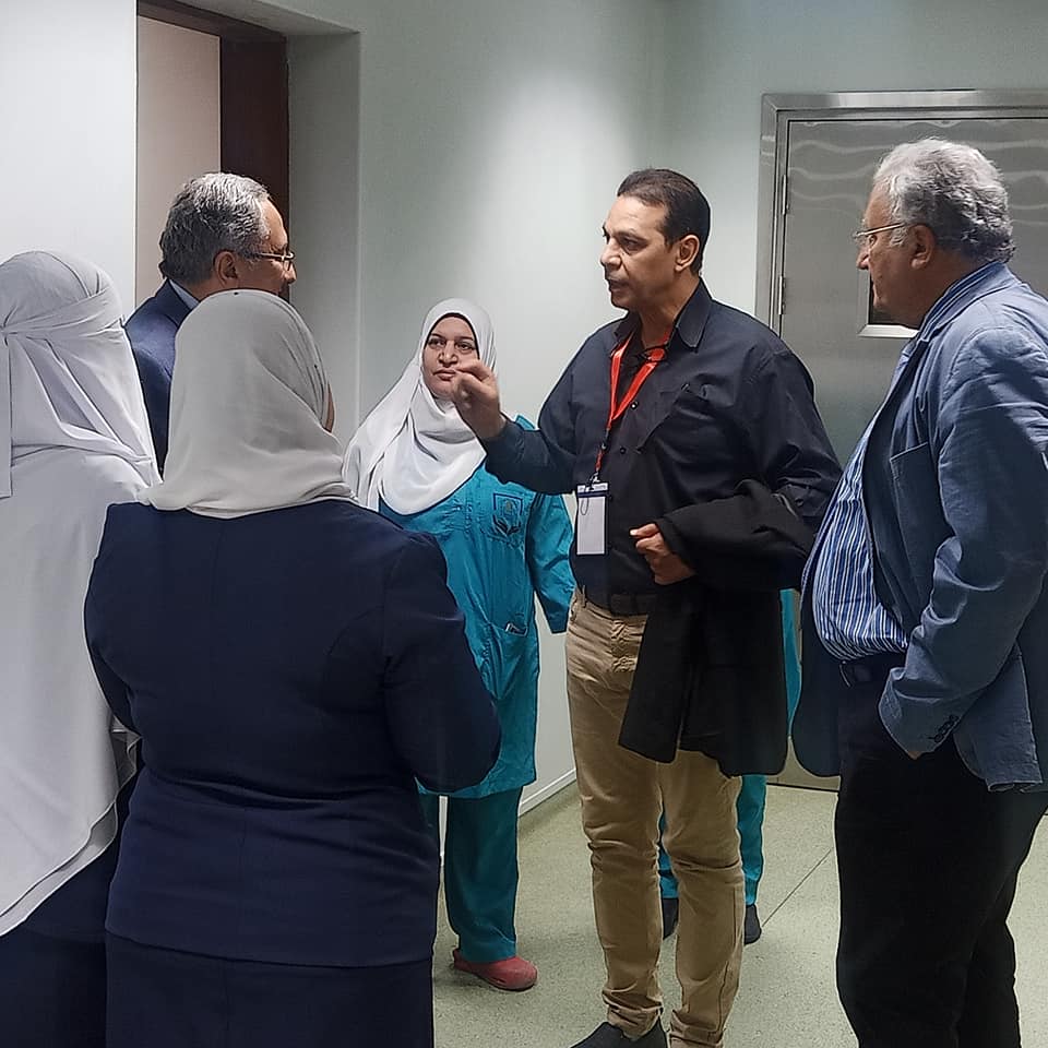 صاحب الوفد  ا.د / محمد محمد  عبد الحميد مرسى- نائب مدير المستشفى الإصابات والطوارئ للشئون الطبية حيث قاموا بزيارة مستشفى الاصابات وكانت جولة تفقدية للوقوف على مستوى الخدمة الطبية المقدمة وفق معايير الجودة الصحية وامكانات التدريب المتاحة بالمستشفى للسادة الأطباء الوافدين للتعاون بين قسم جراحة العظام بكلية طب القصر العيني جامعة القاهرة وقسم جراحة العظام بكلية الطب جامعة أسيوط في مجال تدريب الأطباء وكذلك امكانية عمل ورش التدريب العملي بمستشفى الاصابات والطوارئ الجامعي الجديد .