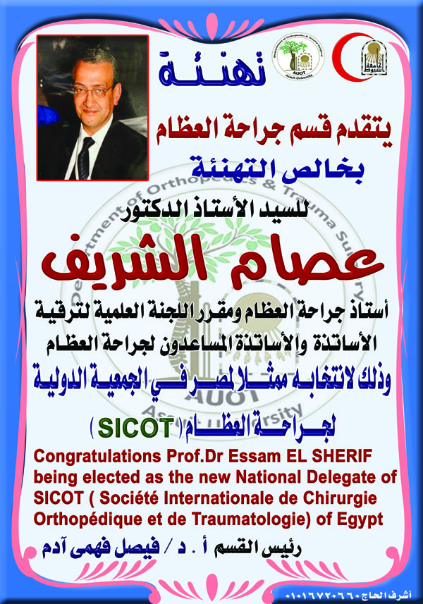 Congratulations to Prof. Dr. Esam Elsherief the Professor of Orthopedic Surgery and Traumatology 26 January 2016 Congratulations to Prof. Dr. Esam Elsherief the Professor of Orthopedic Surgery and Traumatology