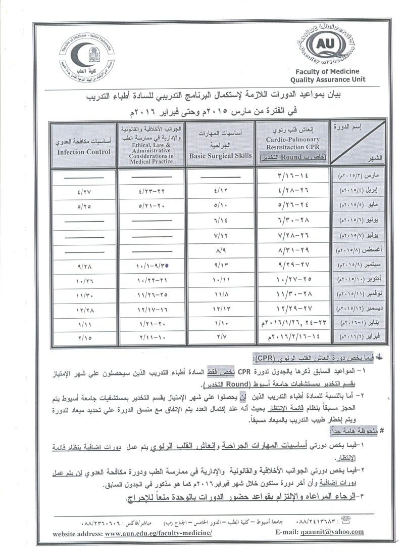 Dates of the Training Program Completion Courses for Training Doctors 16 March 2015 Dates of the Training Program Completion Courses for Training Doctors