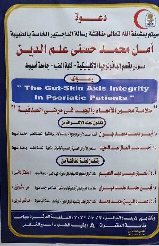 Invitation to discuss the master's thesis - Dr. Amal Mohamed Hosny - Department of Clinical Pathology 27 March 2022