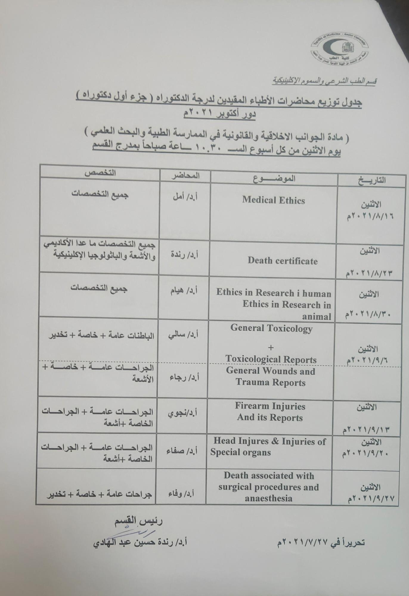 Lecture schedule for the first part of Ph.D. - Department of Forensic Medicine 4 August 2021 Lecture schedule for the first part of Ph.D. - Department of Forensic Medicine