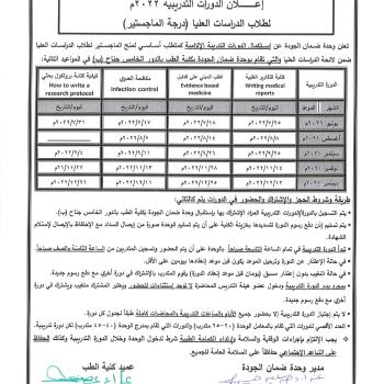 Announcement of Postgraduate Training Courses - Master's - Quality Assurance Unit