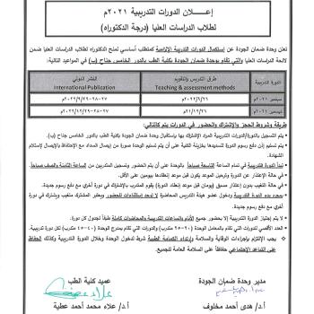Announcement of Postgraduate Training Courses - Ph.D. - Quality Assurance Unit