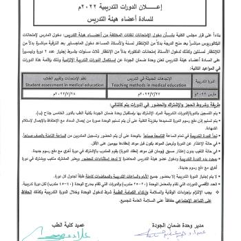 Announcement of training courses for faculty members - in the Quality Assurance Unit