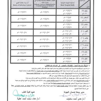 A statement of the dates of the courses necessary to complete the training program for the training doctors - in the Quality Assurance Unit