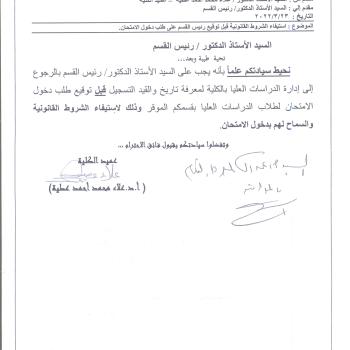 Fulfilling the legal requirements before the department head signs the application to enter the exam