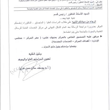 The necessity of reviewing master’s and doctoral theses at the University’s Public Services Center