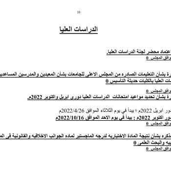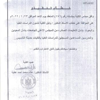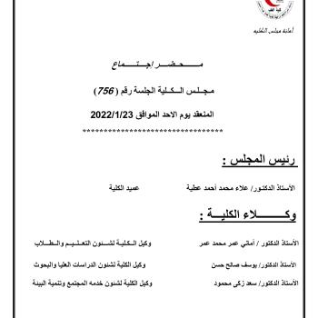 انعقاد مجلس الكلية يوم الاحد الموافق ٢٣ يناير ٢٠٢٢