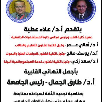 يهنئ السيد الأستاذ الدكتور/ يوسف صالح  - وكيل الكلية لشئون الدراسات العليا والبحوث