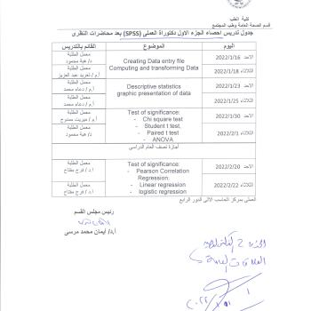 Teaching schedule for the first part of the Ph.D. practical statistics (SPSS) after the theoretical lectures - Department of Public Health