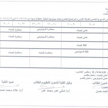 Teaching schedule for the first year, the special program, the fifth week, in the block of cell biology and its function, from January 9 to 13, 2022