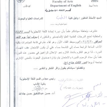 The date of holding the English language proficiency course required to grant higher scientific degrees (Masters and Ph.D.)
