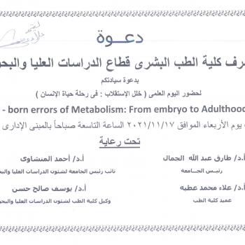Invitation to attend the scientific day (in - born errors of Metabolism : From embryo to Adulthood )