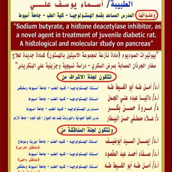 An invitation to attend the discussion of the PhD thesis submitted by Dr. Asmaa Yousef Ali - Department of Histology, on Wednesday, November 17, 2021 AD, at 12 noon in Hall A - Fifth Floor -…