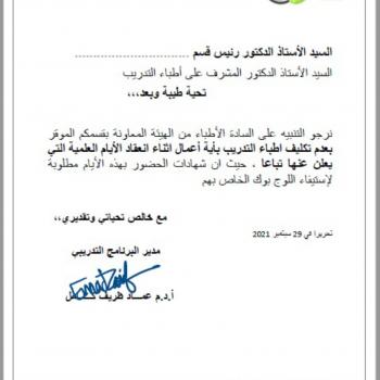 A warning to the doctors from the supporting body after assigning the training doctors to any work during the scientific days
