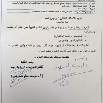 Approval of the Faculty Council that any doctor should submit master's and doctoral examinations