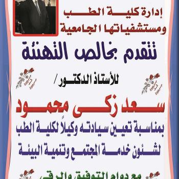 بخالص الحزن ينعي الأستاذ الدكتور/ علاء عطية - عميد كلية الطب ورئيس مجلس إدارة المستشفيات الجامعية والسادة وكلاء الكلية والسادة أعضاء هيئة التدريس ومعاونيهم والعاملين   الأستاذة الدكتورة/ صفية…