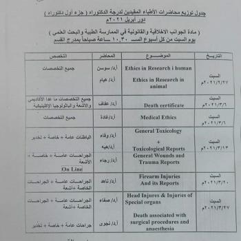Schedule of MD Lectures, 1st Part, April 2021, Forensic Medicine and Clinical Toxicology Department