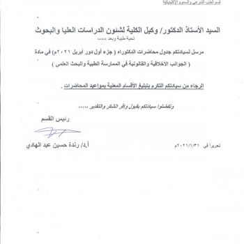 Schedule of MD Lectures, 1st Part, April 2021, Forensic Medicine and Clinical Toxicology Department
