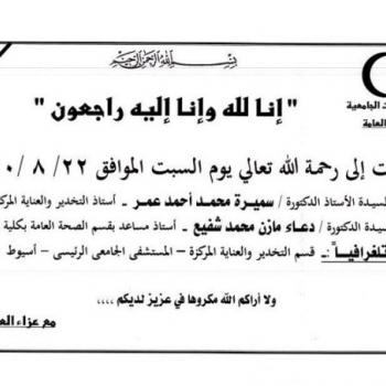 ينعى الاستاذ الدكتور / علاء عطية _ عميد كلية الطب ورئيس مجلس إدارة المستشفيات الجامعية والسادة وكلاء الكلية والسادة اعضاء هيئة التدريس و العاملين بخالص الحزن والأسى
