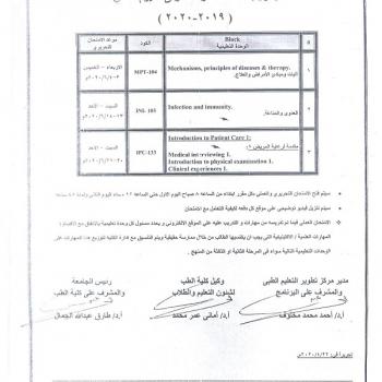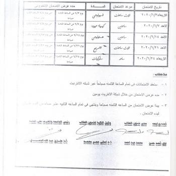 Second Term Online Exam Time-table of First Grade 2019/2020, new regulation