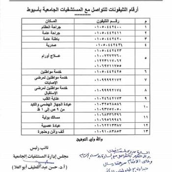 Mobiles' Numbers to Contact with University Hospitals