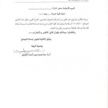 An invitation to attend a symposium to raise awareness of the means to prevent Corona virus