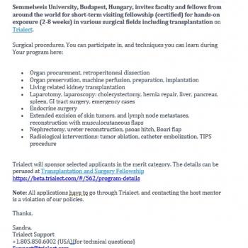 Announcement of a Training Grant in Surgical Specialties