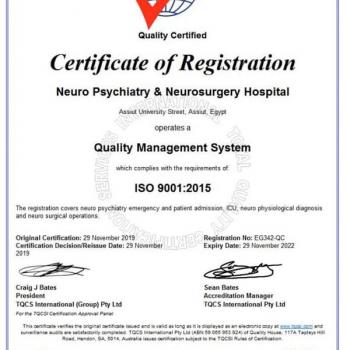 Neuro-Psychiaty & Neurosurgery Hospital Obtain ISO 9001 Certification