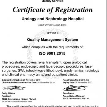 Urology & Nephrology Hospital Obtain ISO 9001 Certification