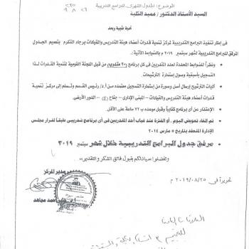 Training Programs Schedule of Staff Members and Leaders Development Center, September 2019