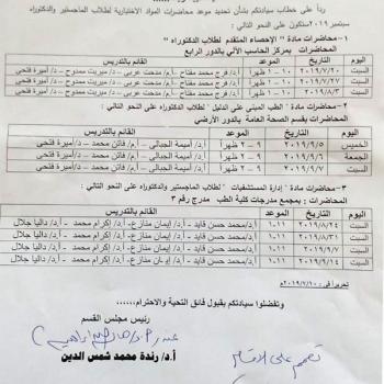 The Post Graduate Students' Lectures Time-Table of Public Health Department