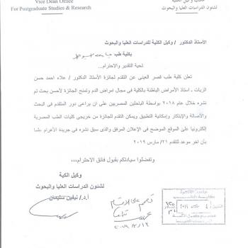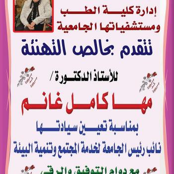 Appointing Prof. Maha Kamel Ghanem, the Professor of Chest Diseases of the Faculty of Medicine as the University Vice President of Community Services and Environmental Affairs