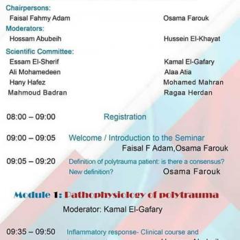 يتشرف قسم جراحة العظام بدعوة سيادتكم لحضور للورشة التدريبية للإصابات المتعددة والتي سوف يتم عقدها يوم الخميس الموافق 21 مارس 2019 بالقاعة الثمانية بالمبنى الإداري