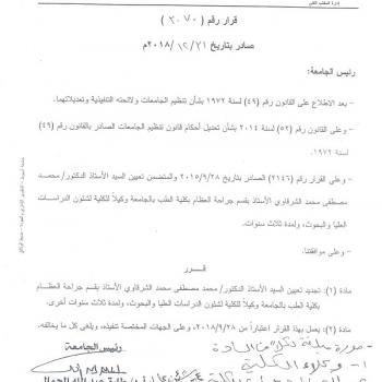 The Faculty of Medicine and University Hospitals congratulate Prof. Ahmed Kamal El-Minshawy, the professor of Cardio-thoracic surgery department for appointing him as the…