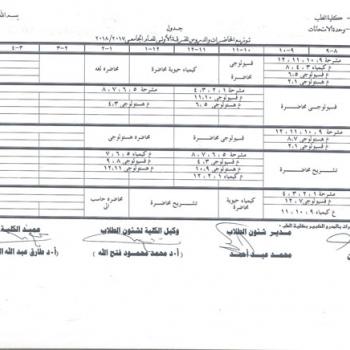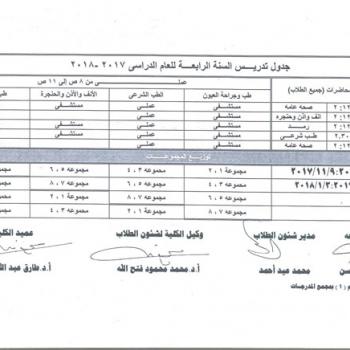 Study Time Table of Fourth Year 2017/2018