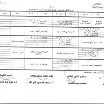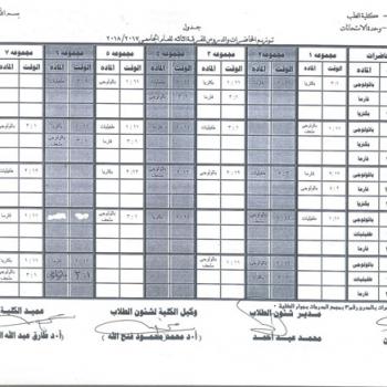 Study Time Table of First Year 2017/2018